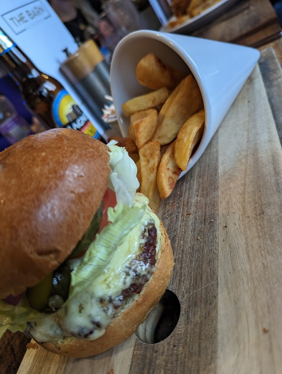 The menu at The Barn Restaurant focuses on classic comfort dishes that are cooked well and served generously. One of the highlights is the Fish and Chips, a dish that feels right at home in any British restaurant. The fish is crispy on the outside and tender inside, paired with golden chips that are just the right balance of crunchy and fluffy. Another favourite that stands out on the menu is the Chilli King Prawns. They bring a bit of heat and bold flavour to the table, making them a great option if you enjoy seafood with a kick.